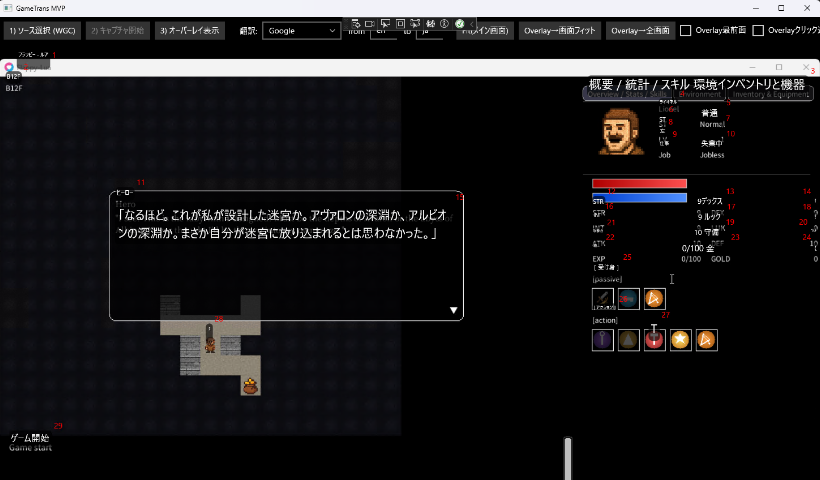 GameTransは、ゲーム画面に表示されるテキストを自動で読み取り、別画面に翻訳を重ねて表示する支援ツールです。ゲーム映像をリアルタイムで取り込み、翻訳文を半透明のパネルに映し出すため、進行を止めることなく内容を理解できます。